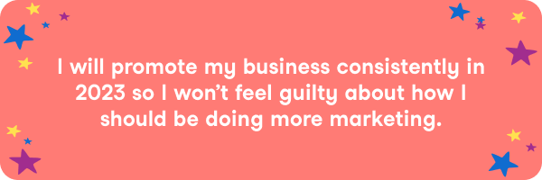 That's not the resolution, however. Our final resolution is this: 🎉 I will promote my business consistently in 2023 so I won't feel guilty about how I should be doing more marketing. 🎉 | | | Say it louder! The truth of the matter is you don't have to be everywhere, on every platform, doing it all. You simply need to be active on, and growing, the platforms that work for your business.